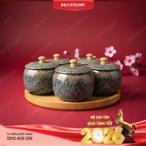 🎁 Giới thiệu tổng quan bộ 05 khay hũ đựng kẹo mứt men thạch nhũ hỏa biến Bát Tràng