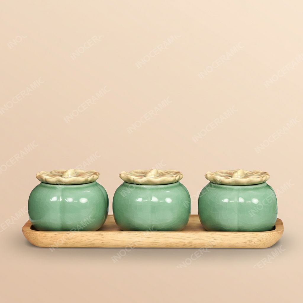 🎁 Khay 3 hũ đựng mứt quả hồng men lục ngọc Bát Tràng – Món quà Tết đẳng cấp cho doanh nghiệp