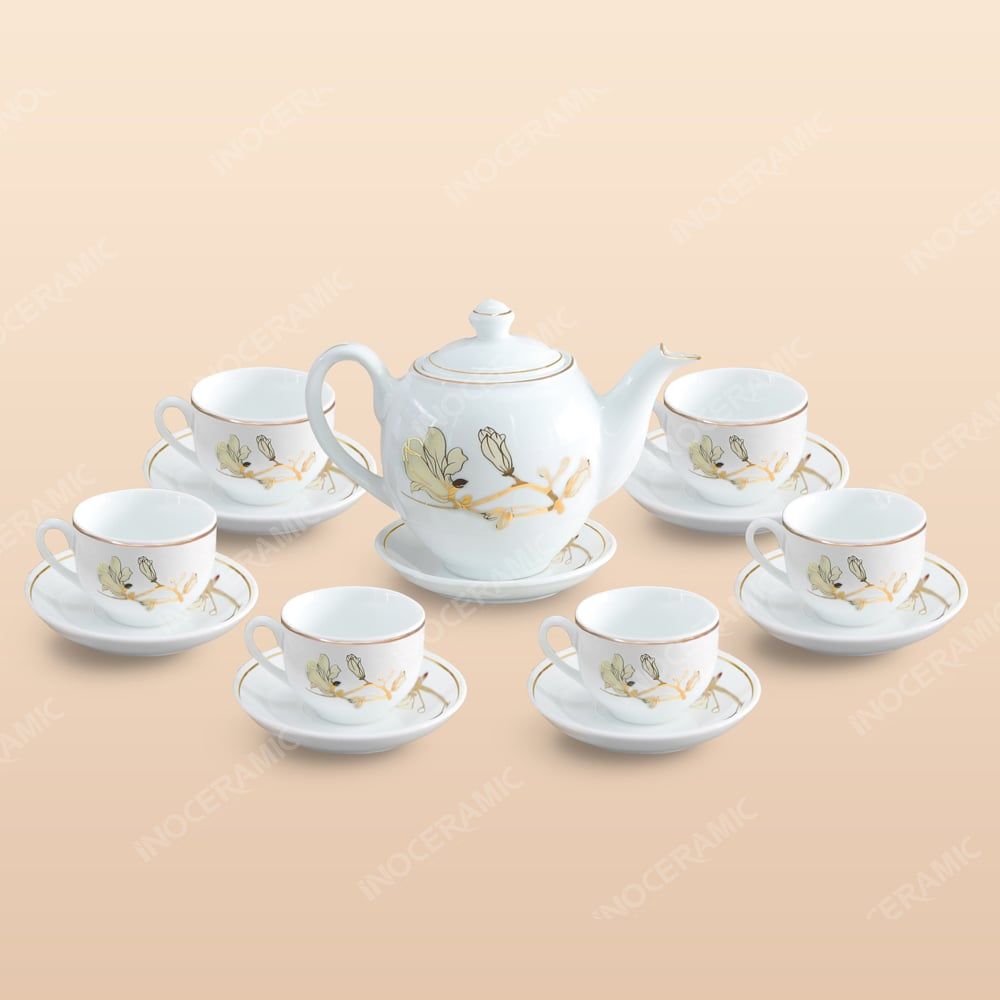 - Tên sản phẩm: Bộ ấm trà Dáng Minh Long Mộc Lan gốm sứ Bát Tràng in logo cao cấp