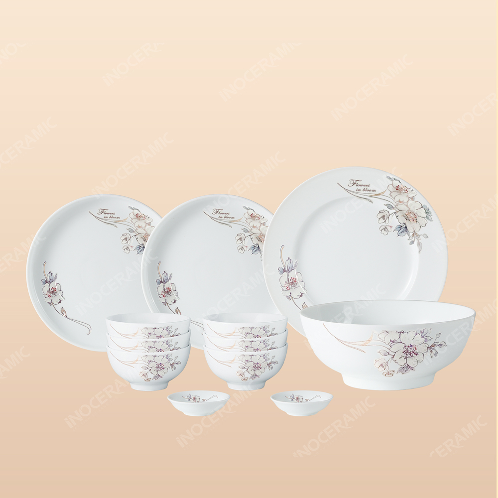 - Thành phần bộ sản phẩm: 06 chén cơm, 01 đĩa bầu dục múi 23cm, 02 đĩa loe (18cm - 20cm), 01 tô 18cm, 02 chén gia vị