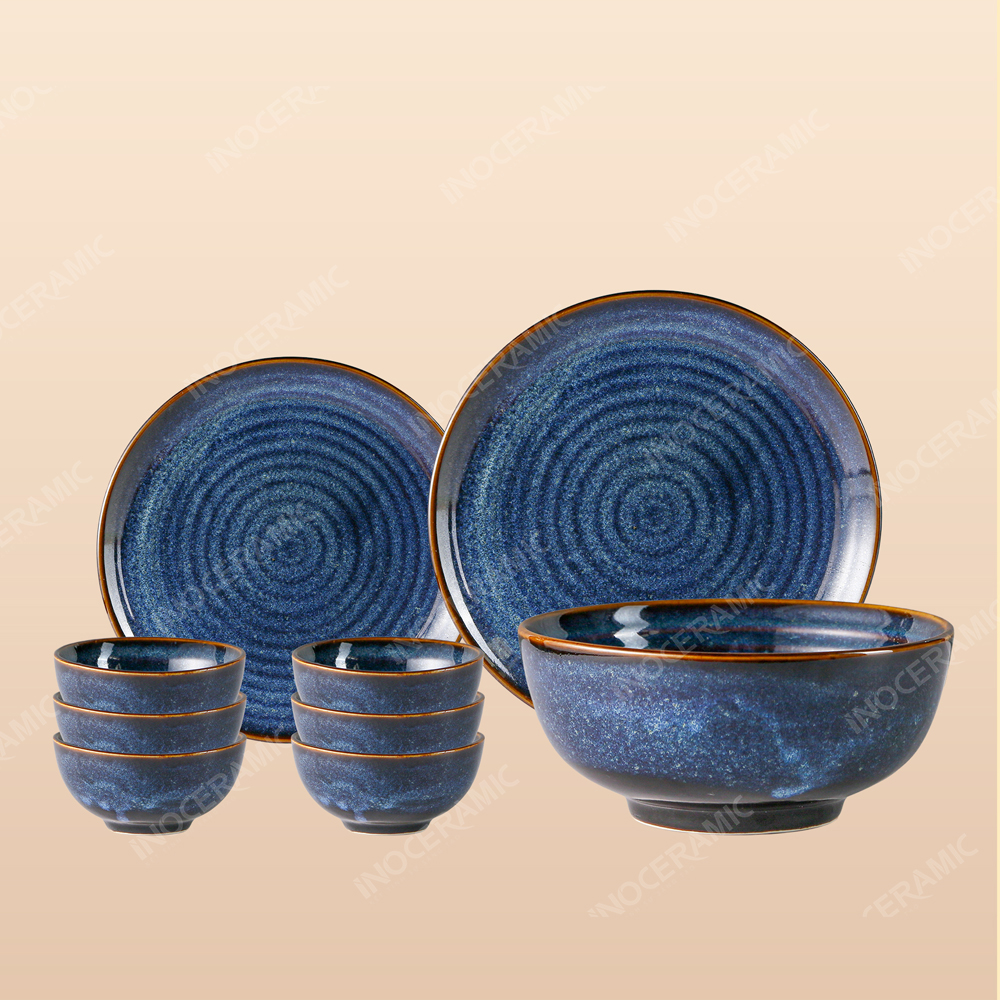 Bộ bát đĩa 9 món men xanh hỏa biến - Quà tặng in logo ý nghĩa