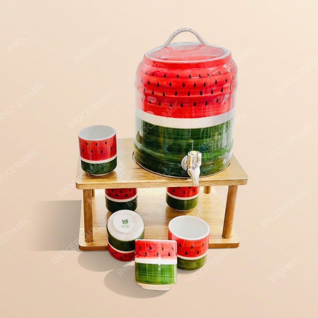 🍶 Bộ bình sứ đựng nước Dưa Hấu vẽ tay – Sự giao thoa giữa thẩm mỹ hiện đại và tinh hoa truyền thống