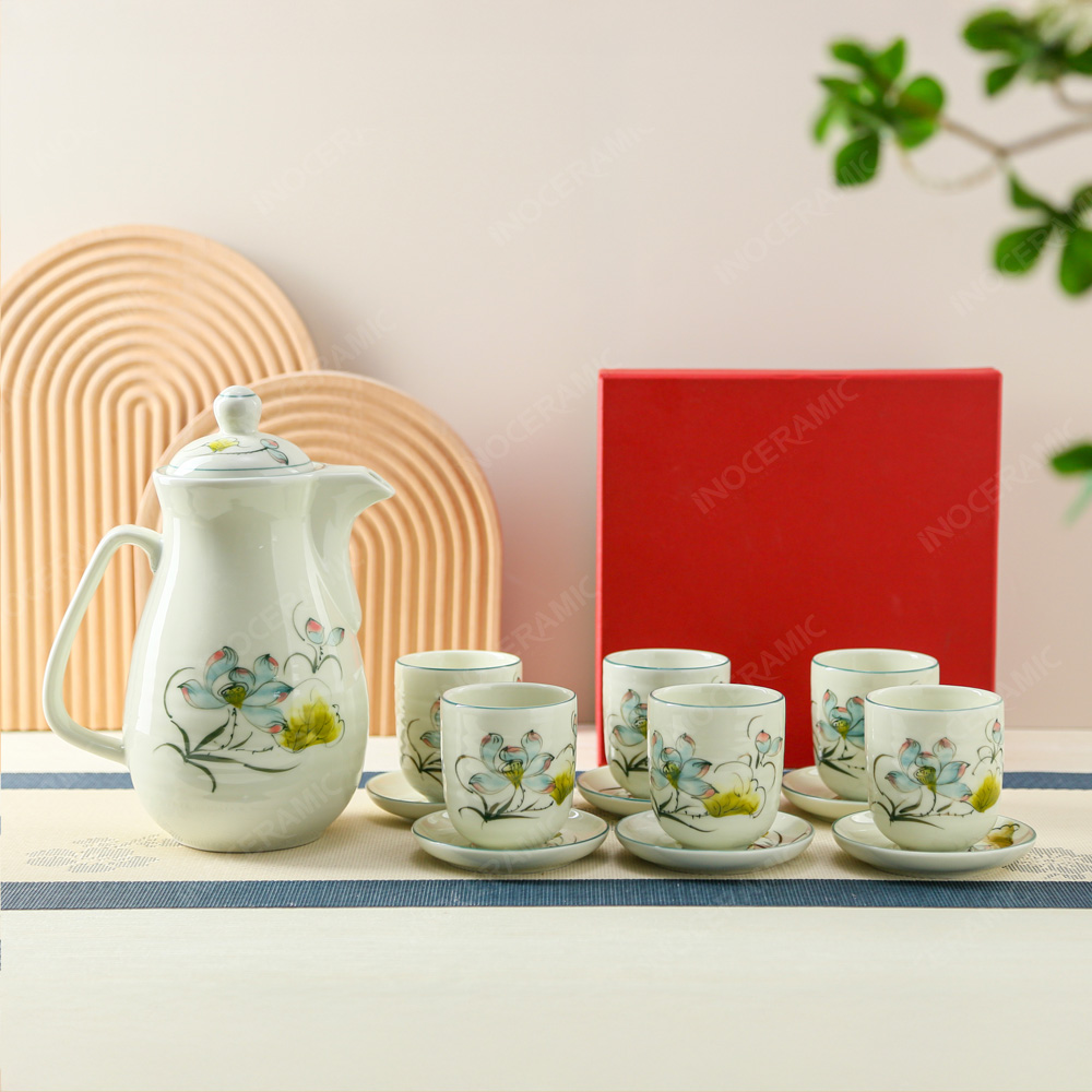Không chỉ là một bộ bình nước gốm sứ thông thường, sản phẩm còn mang trong mình tinh thần của gốm sứ Bát Tràng – dòng gốm nổi tiếng với lịch sử hàng trăm năm, gắn liền với văn hóa và đời sống người Việt. Chính giá trị văn hóa này tạo nên sự khác biệt, giúp bộ bình sứ hoa sen trở thành lựa chọn quà tặng có ý nghĩa, bền vững theo thời gian.