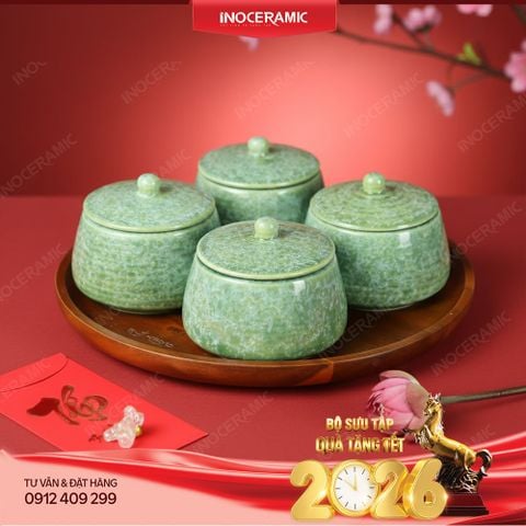 Bộ hũ đựng mứt Lục Thạch Bát Tràng – Sắc xanh thanh khiết cho một mùa tết đủ đầy
