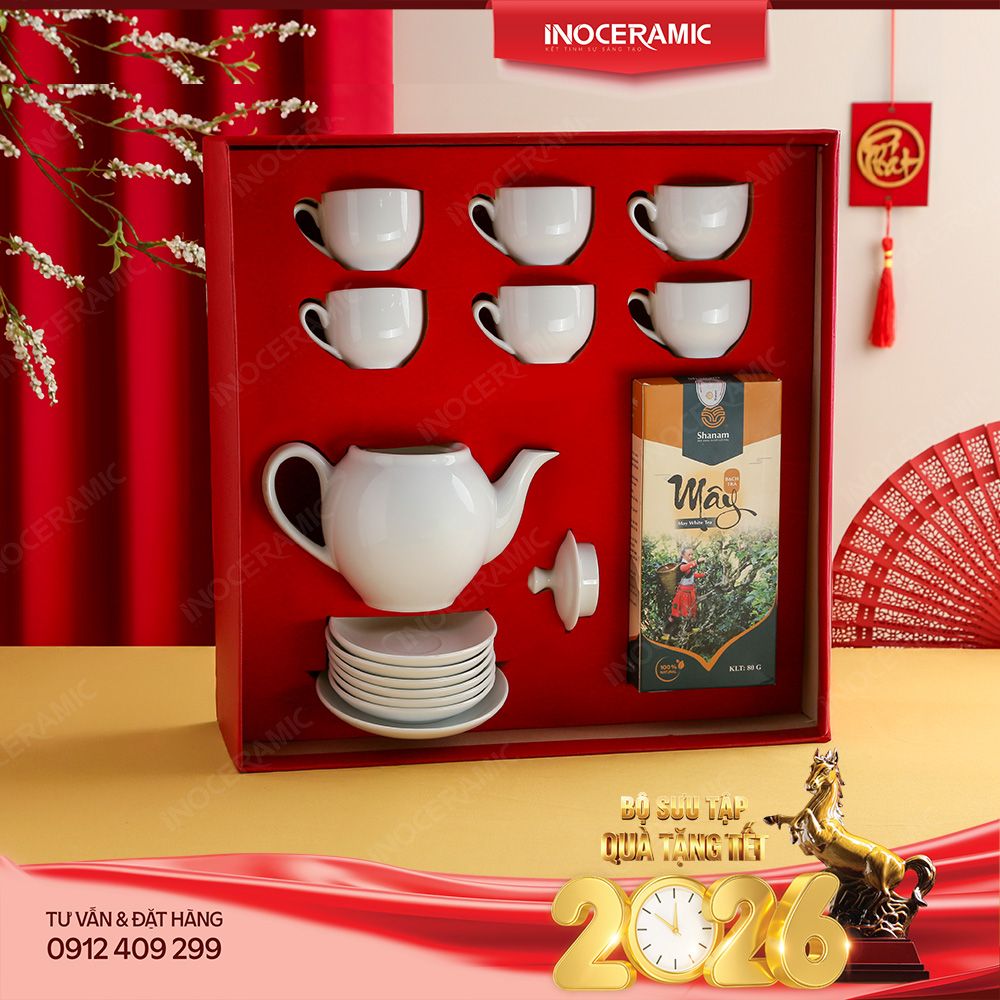 🎁 Bộ quà tặng Tết 2026 "Ngọc Vân Cát Tường" - Tinh hoa gốm Việt mang lời chúc phúc đầu xuân