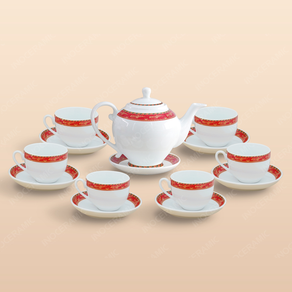 Thành phần: 1 ấm + 6 tách + 7 đĩa lót