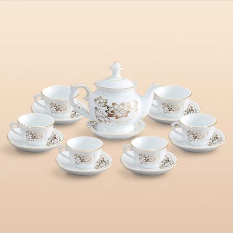 - Thành phần bộ: 1 ấm + 6 tách + 7 đĩa lót