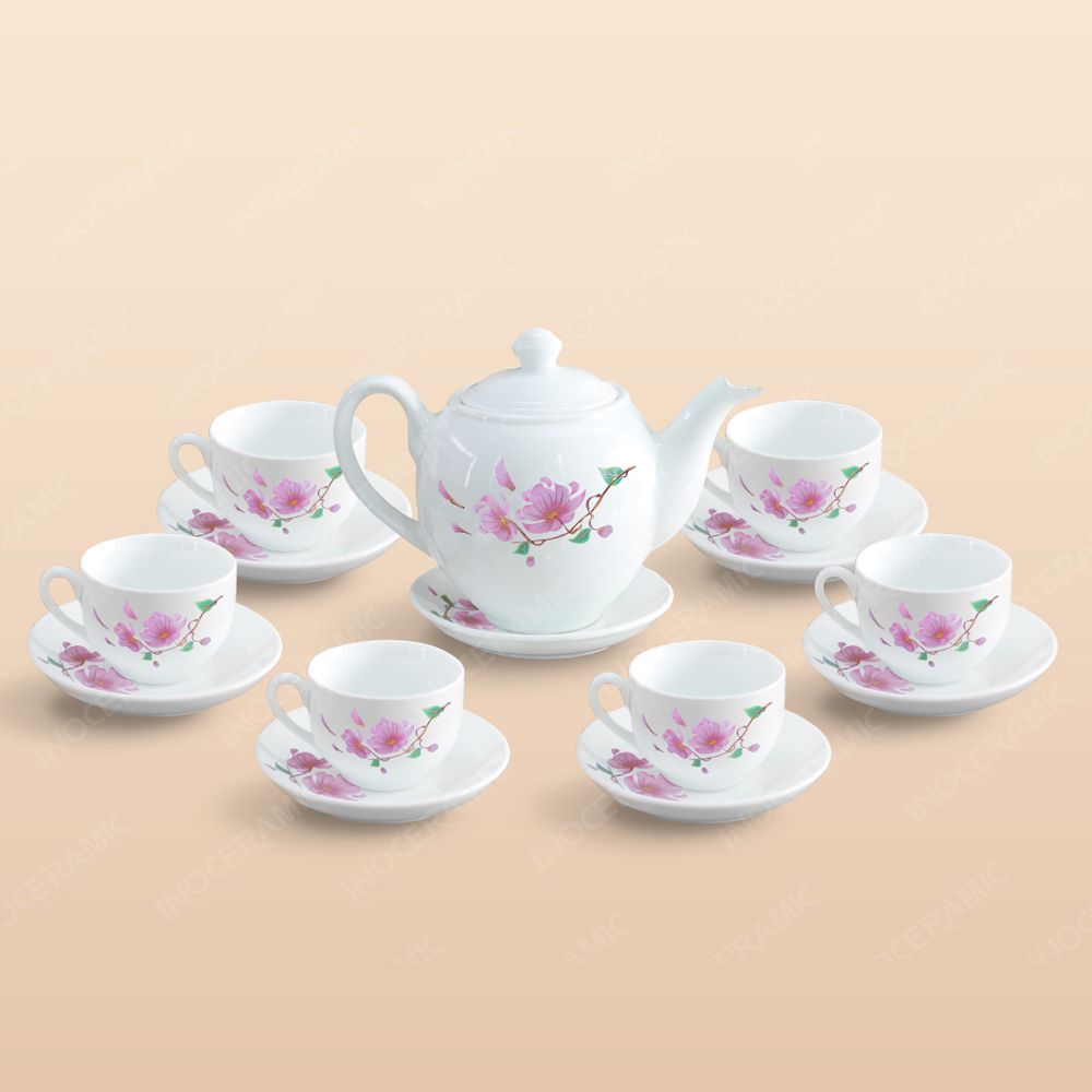 - Thành phần bộ: 1 ấm + 6 tách + 7 đĩa lót
