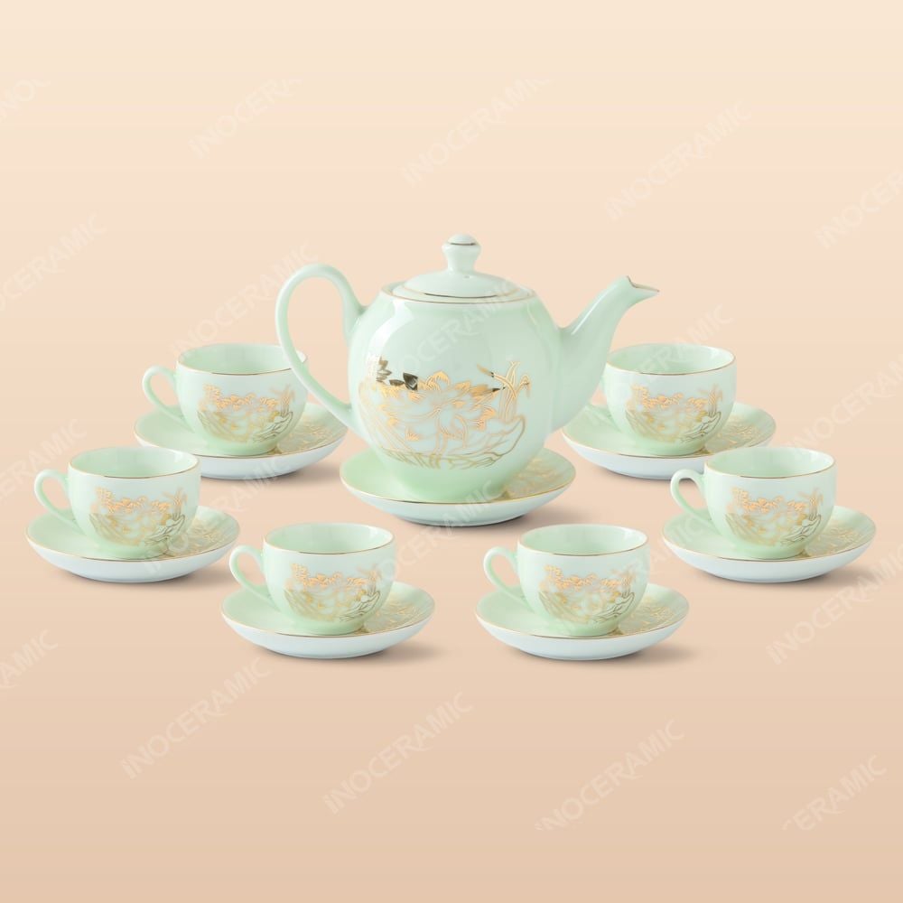 Bộ trà dáng Minh Long men ngọc sen đại - Quà tặng in logo cao cấp CAM KẾT: “Đừng chỉ tặng một món quà – hãy trao một giá trị văn hoá.”