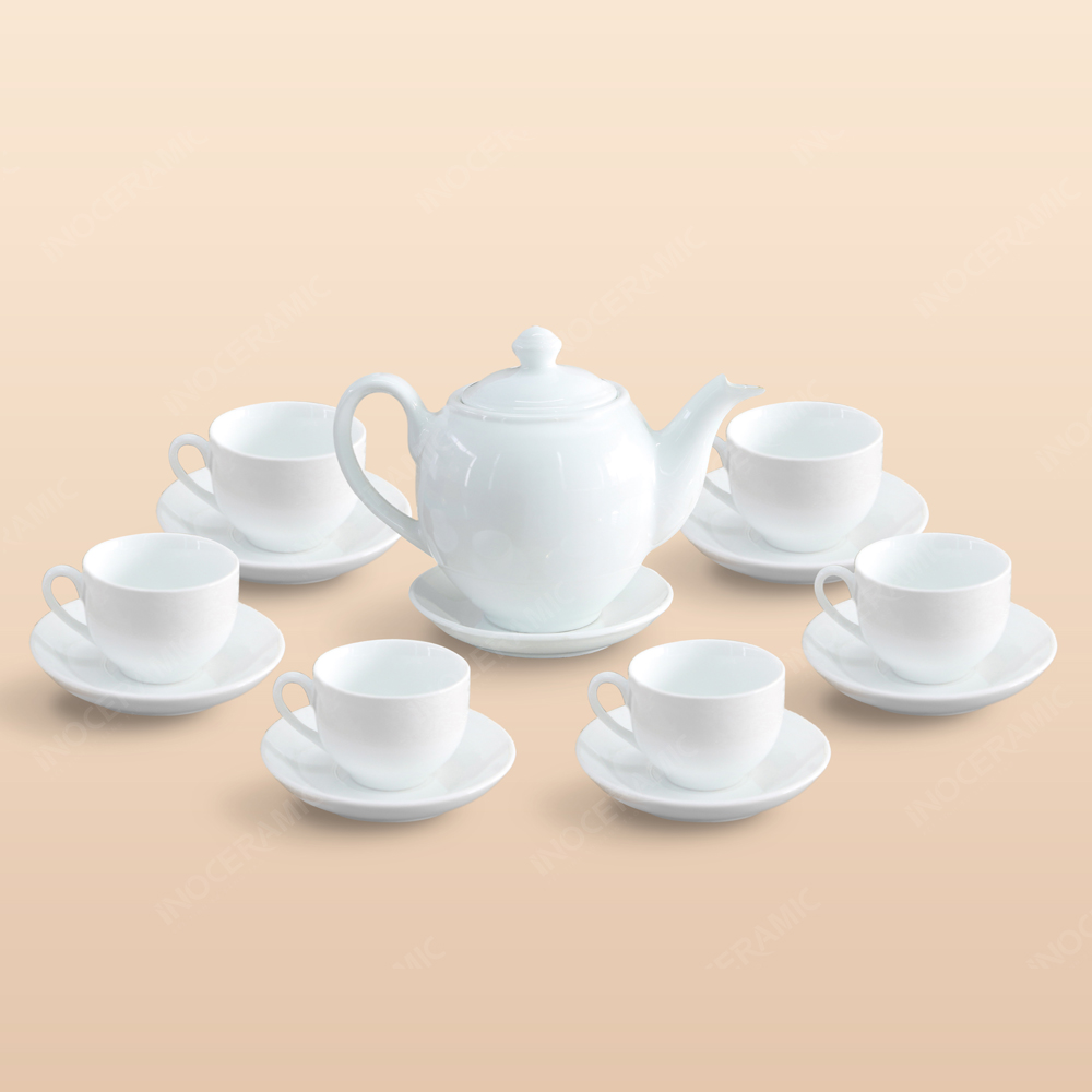 - Thành phần bộ: 1 ấm + 6 tách + 7 đĩa lót