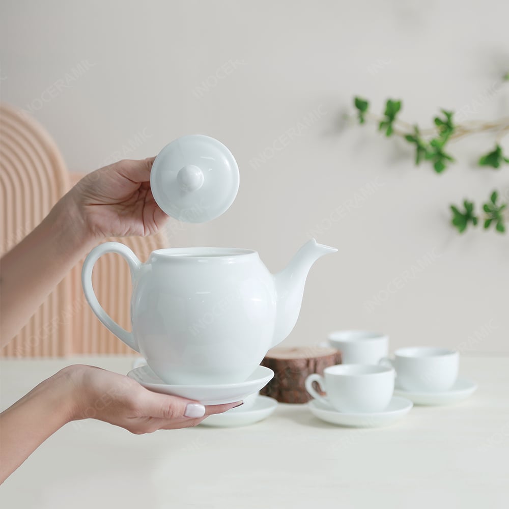 Sự thanh thoát trong từng đường nét, kết hợp với chất liệu men trắng tinh khôi, chính là điều làm nên sức hút vượt thời gian cho bộ ấm trà này.