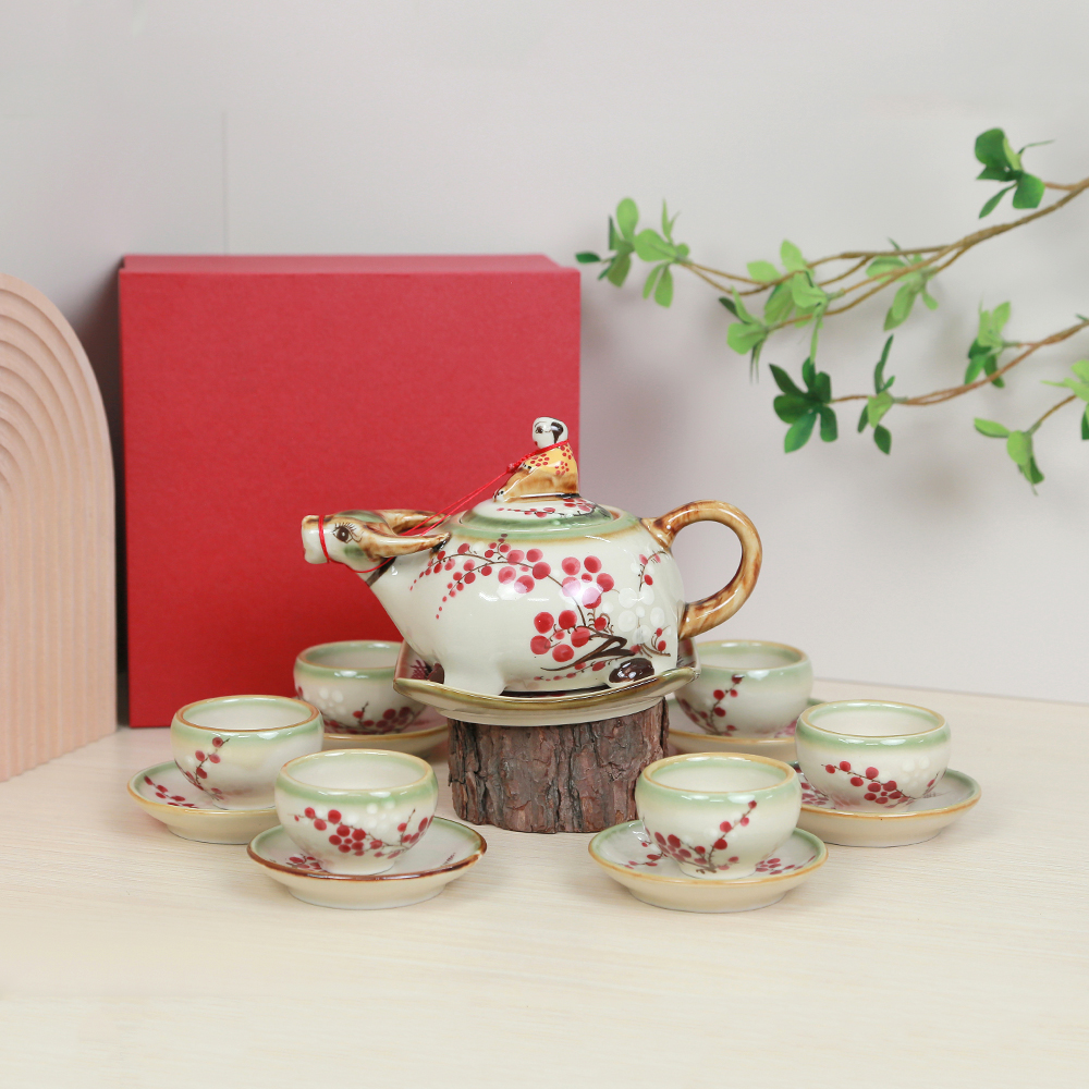 Bộ ấm trà Mục đồng cưỡi trâu không chỉ dành để thưởng trà mà còn là món quà tặng doanh nghiệp đầy ý nghĩa. Hình ảnh mục đồng và trâu biểu trưng cho lao động cần cù, ý chí bền bỉ, là lời chúc cho một năm hanh thông, thịnh vượng. Hoa đào đông tượng trưng cho mùa xuân, cho khởi đầu mới và phù hợp để gửi tặng đối tác, khách hàng vào dịp lễ Tết, hội nghị hay kỷ niệm thành lập.