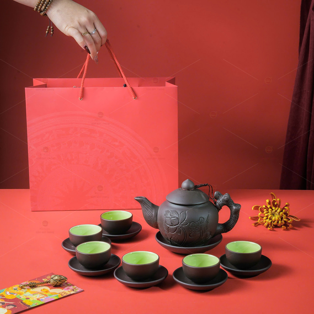 Trà đạo không chỉ là một cách thưởng thức, mà còn là nghệ thuật sống. Trong từng ngụm trà là sự tĩnh lặng, sự kết nối với thiên nhiên, và sự chiêm nghiệm sâu sắc. Bộ ấm trà tử sa đen hoa sen đắp nổi in logo là hiện thân cho tinh thần đó, một tuyệt phẩm thủ công từ làng gốm Bát Tràng, kết hợp vẻ đẹp trầm mặc của tử sa với hình ảnh hoa sen thanh cao, tạo nên một không gian trà đạo trang nhã, sang trọng và đầy cảm hứng.