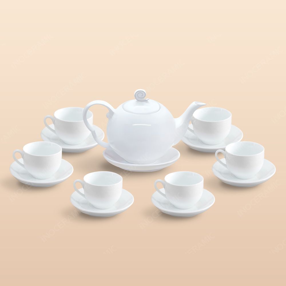 - Tên sản phẩm: Bộ trà xoắn ốc men trắng in logo