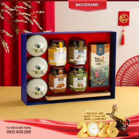 Với tinh thần đó, Inoceramic tự hào giới thiệu hộp quà Tết “Xuân Bình An” – bộ set quà Tết cao cấp được kết hợp hoàn hảo giữa nghệ thuật gốm sứ Bát Tràng truyền thống và đặc sản Tết hiện đại, mang đến trải nghiệm đẳng cấp và đầy cảm xúc cho người nhận.