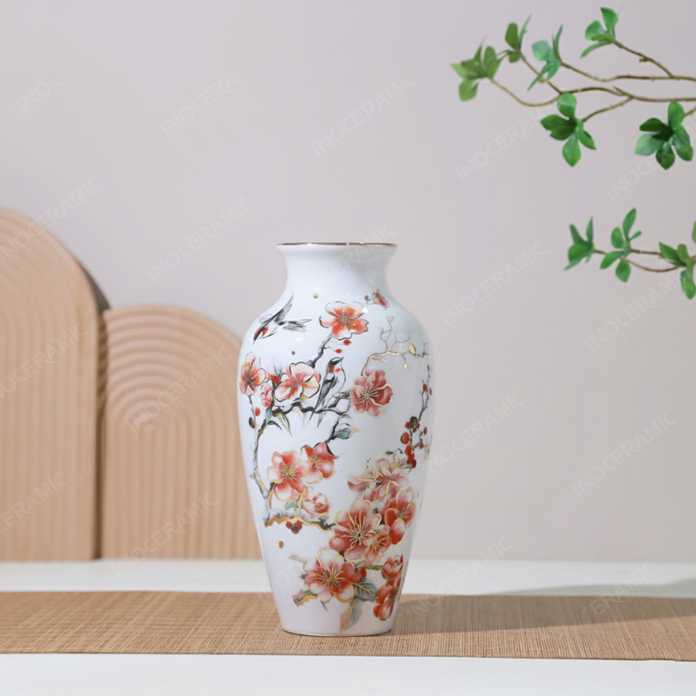 Lọ hoa Bát Tràng - Oanh Vũ Đào Hoa vẽ vàng H30 in logo CAM KẾT: “Đừng chỉ tặng một món quà – hãy trao một giá trị văn hoá.”
