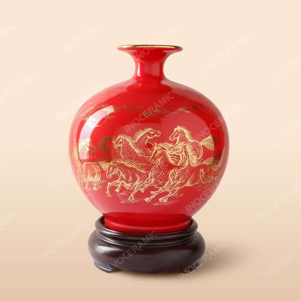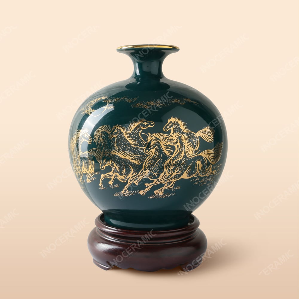- Tên sản phẩm: Lọ hút tài lộc Ngựa Phi Gió Thảo Nguyên gốm sứ Bát Tràng in logo