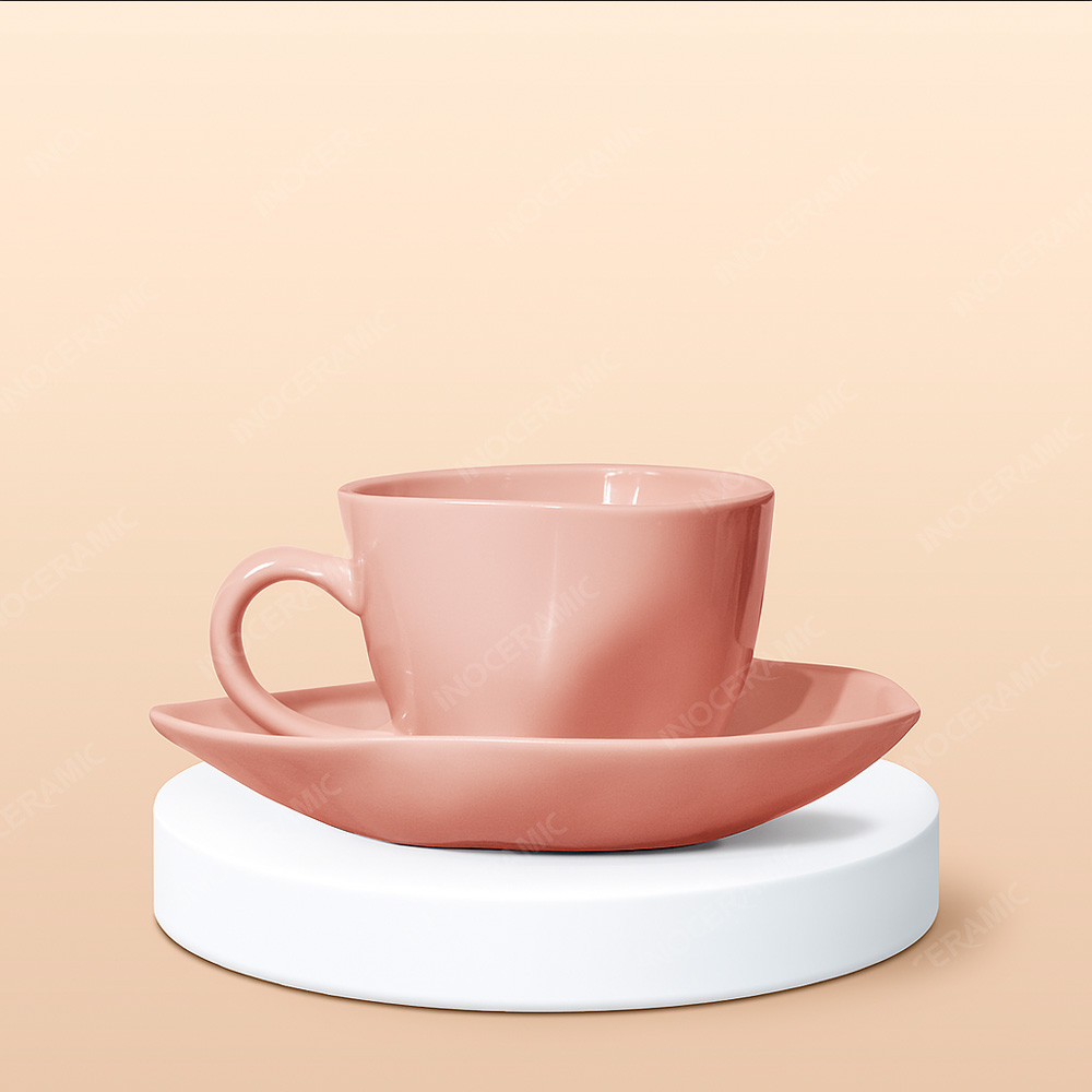 • Tên sản phẩm: Ly Capuchino / Cappucino sứ méo quai tim full màu in logo