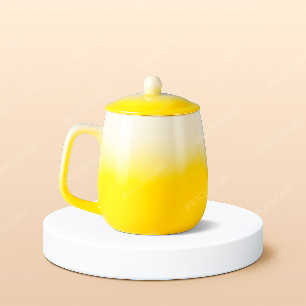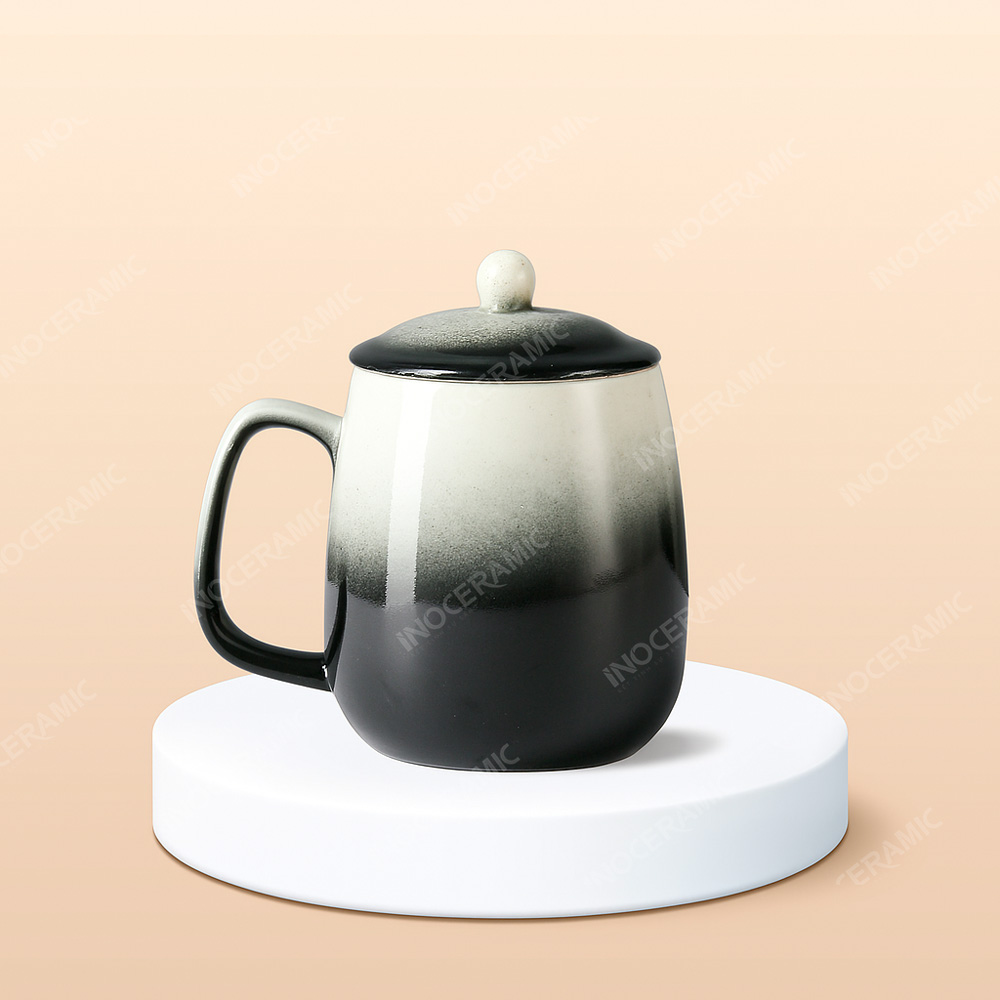 • Tên sản phẩm: Ly sứ bầu quai vuông màu loang có nắp in logo