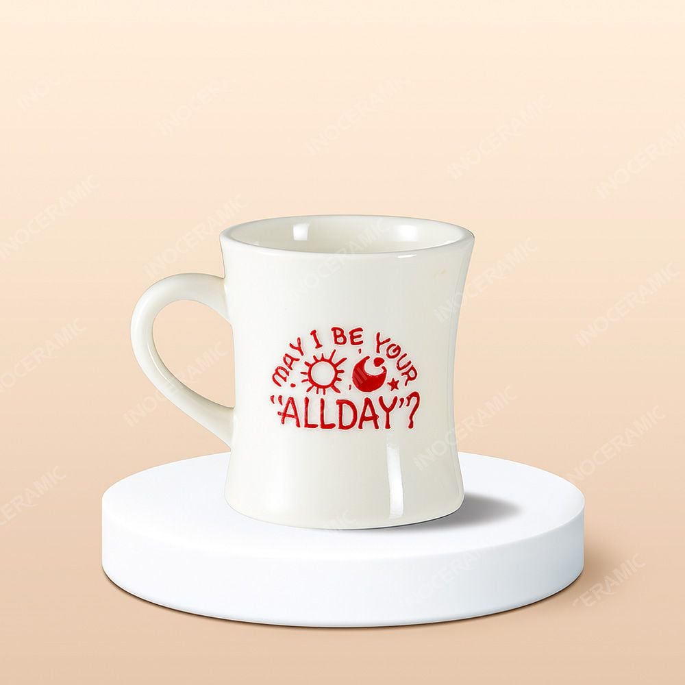 • Tên sản phẩm: Ly sứ eo quai tim in chữ May I Be Your "All Day" (Mãi Bên Nhau)