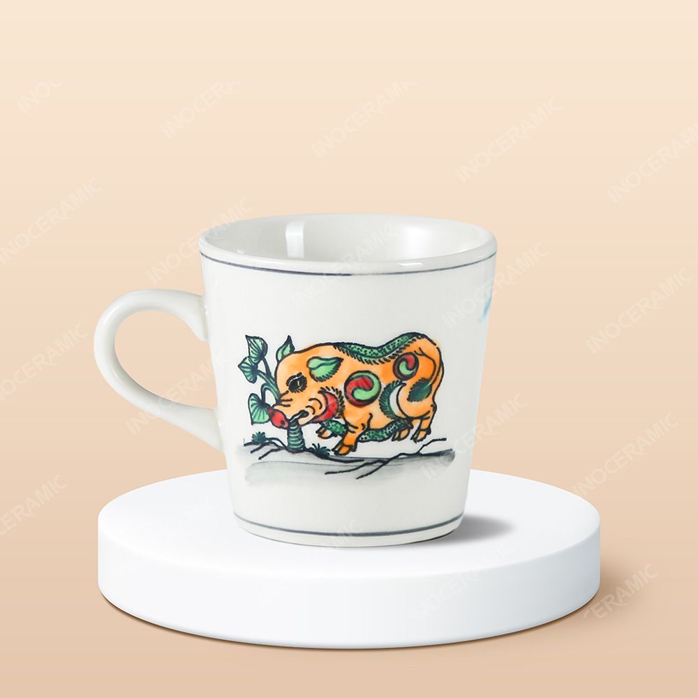 • Tên sản phẩm: Ly sứ in Tranh dân gian Đông Hồ lưu niệm - Lợn Ăn Cây Ráy