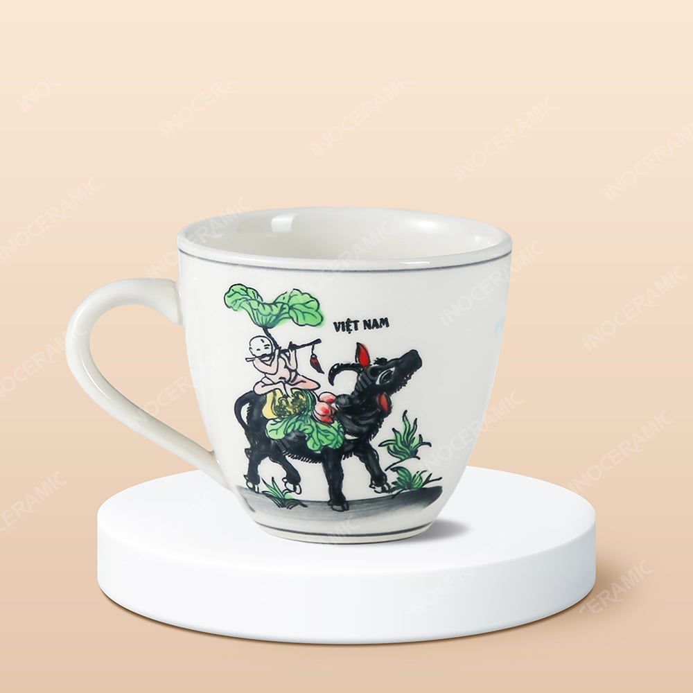 • Tên sản phẩm: Ly sứ in Tranh dân gian Đông Hồ lưu niệm - Mục Đồng Chăn Trâu Thổi Sáo