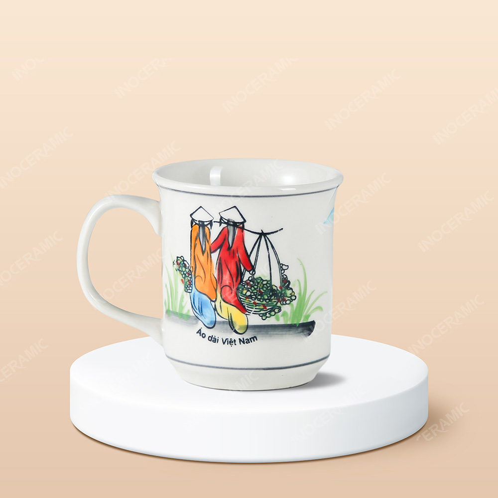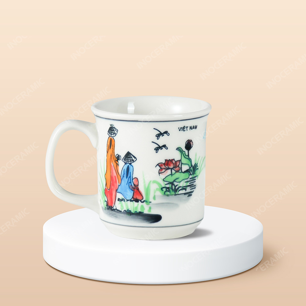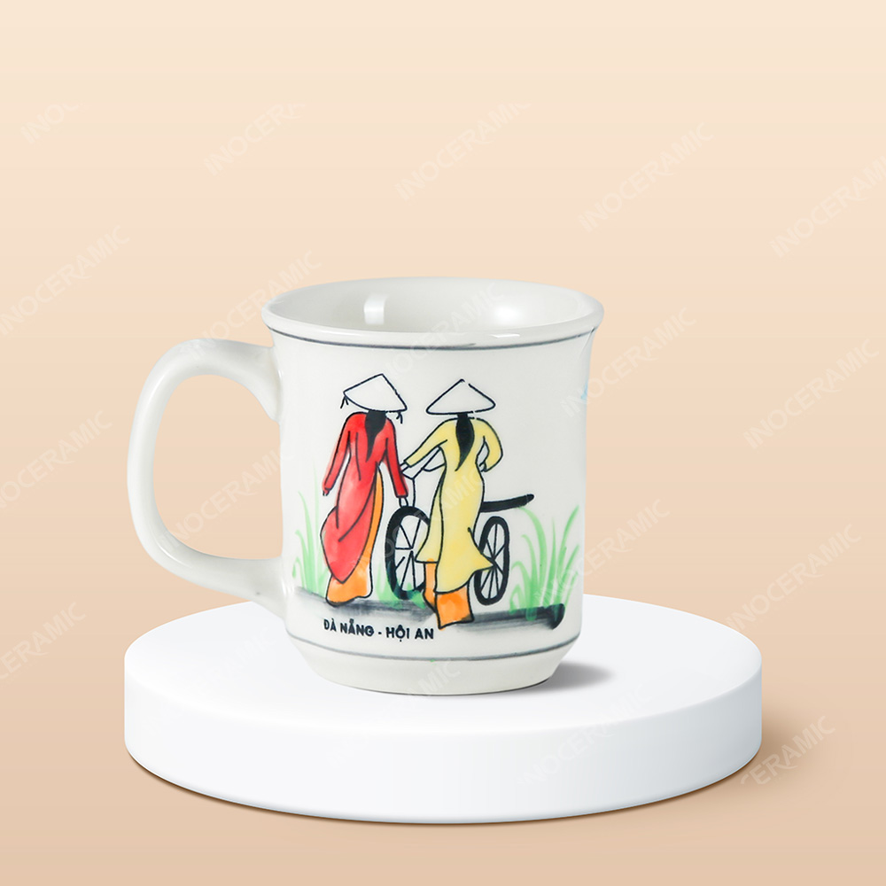 • Tên sản phẩm: Ly sứ trụ miệng loe Du lịch Việt Nam vẽ tay in logo lưu niệm