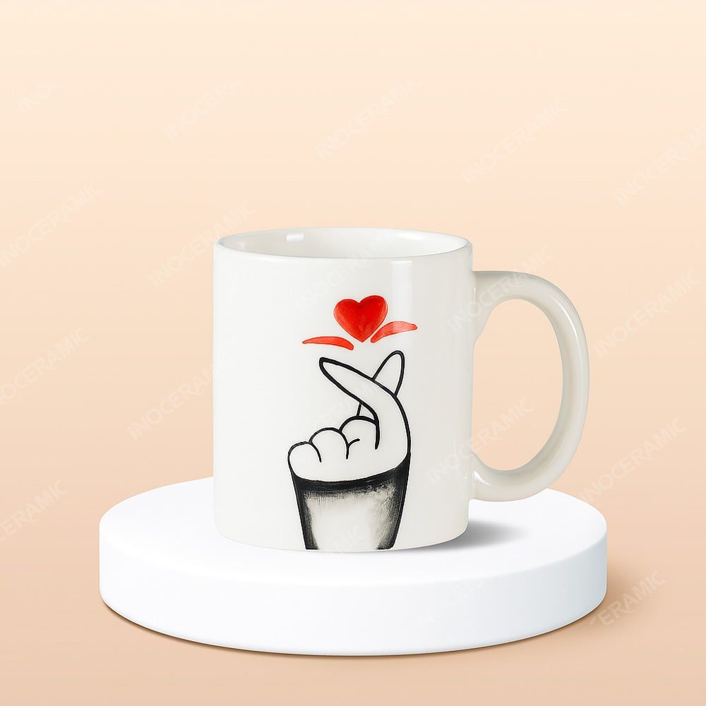 • Tên sản phẩm: Ly sứ trụ quai C hoa văn Thả Tim vẽ tay in logo