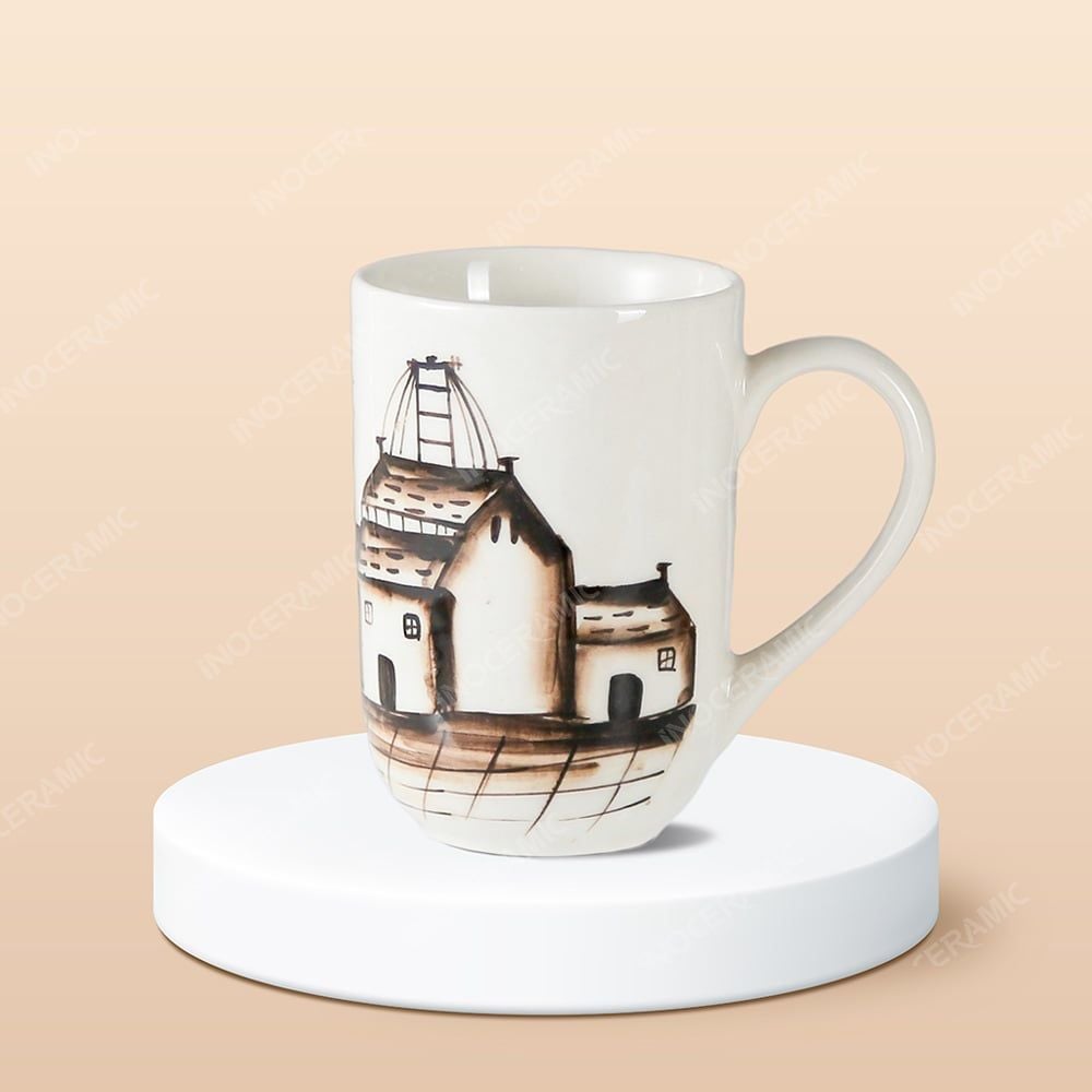 Ly sứ trụ quai tim Hà Nội Phố vẽ tay là sản phẩm gốm Bát Tràng mang đậm dấu ấn hoài niệm với hình ảnh phố cổ Hà Nội được vẽ tay tỉ mỉ, sống động. Dáng ly trụ đứng hiện đại, quai tim tinh tế, men sứ mịn, dễ in logo theo yêu cầu. Thích hợp làm quà tặng khách hàng, nhân viên văn phòng, giúp lan tỏa hình ảnh thương hiệu một cách đầy cảm xúc và nghệ thuật.