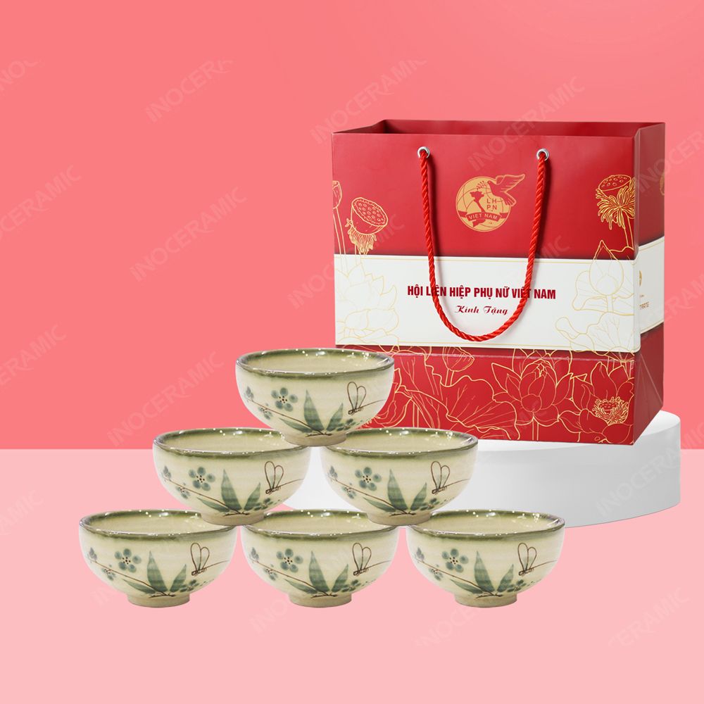 • Tên sản phẩm: Quà tặng phụ nữ - Bộ 06 chén cơm men tro đào chuồn in logo