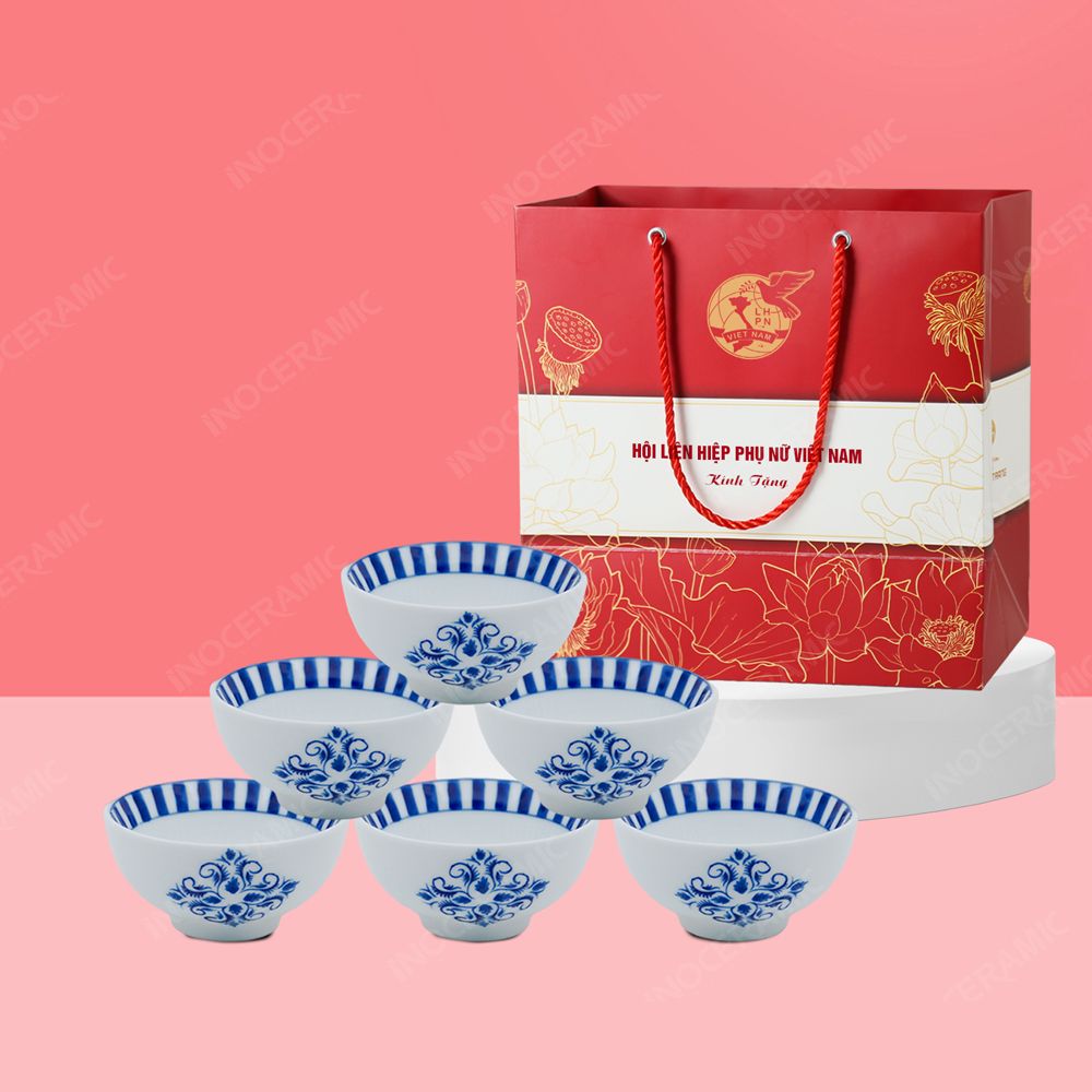 Quà tặng phụ nữ - Bộ 06 chén cơm sọc hoa in logo CAM KẾT: “Đừng chỉ tặng một món quà – hãy trao một giá trị văn hoá.”
