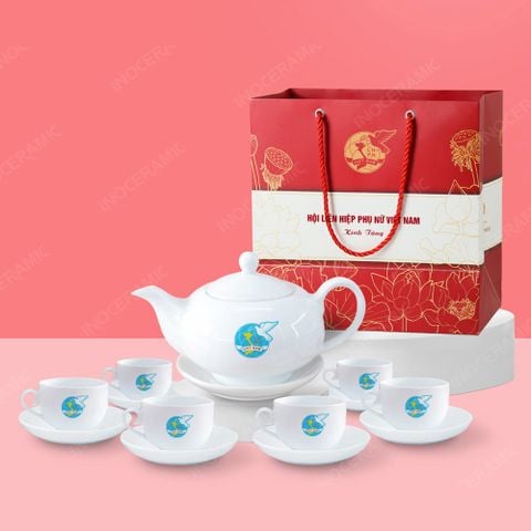 • Tên sản phẩm: Quà tặng phụ nữ - Bộ ấm trà Minh Nguyệt trắng in logo
