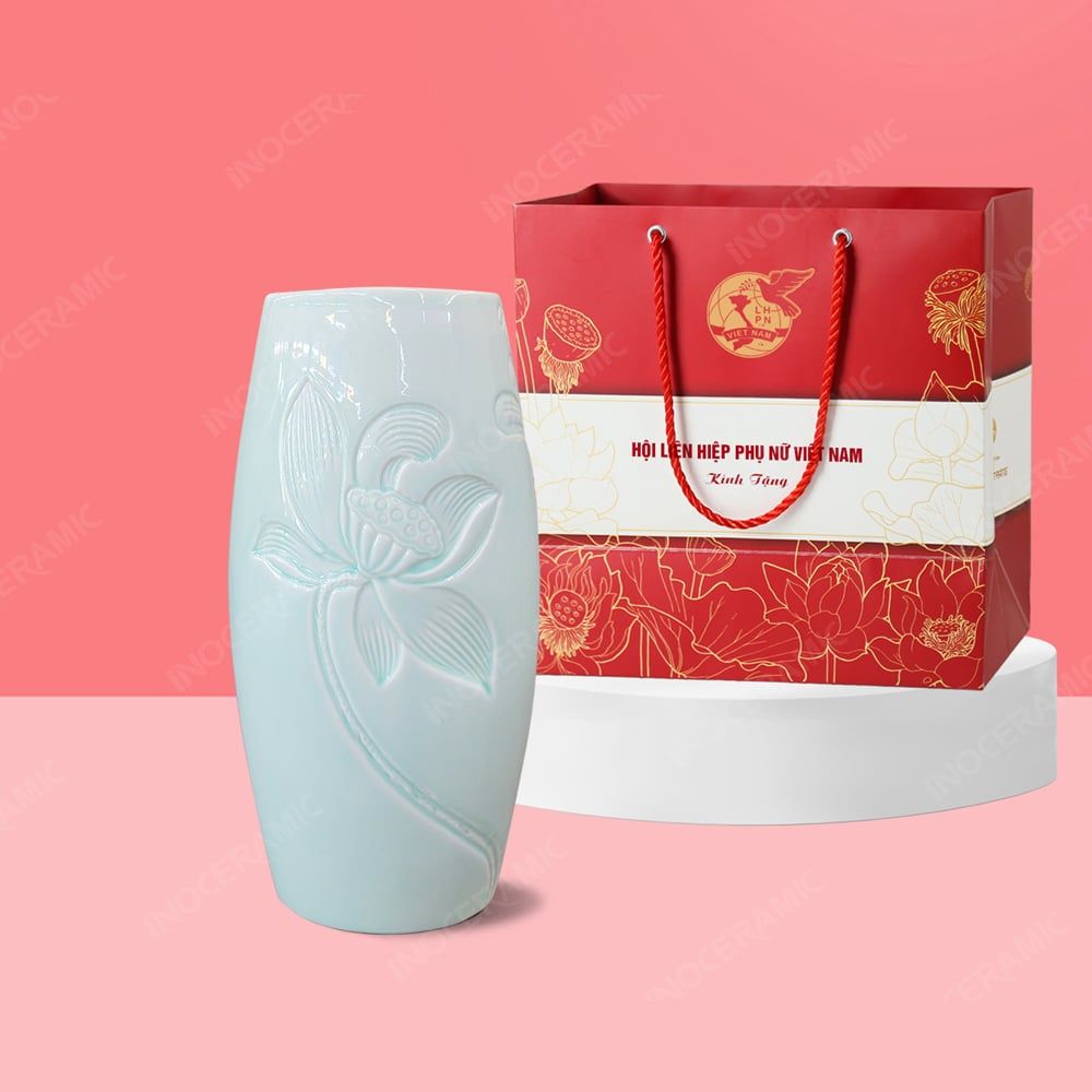 Tinh tế từ đường nét, cuốn hút ở sắc men ngọc dịu dàng, Lọ hoa bom men ngọc khắc sen H27 Bát Tràng mang đến vẻ đẹp thanh khiết và sang trọng. Đây là quà tặng phụ nữ, nhân viên nữ đầy ý nghĩa, giúp doanh nghiệp, công đoàn tri ân và lan tỏa giá trị thương hiệu bền lâu.