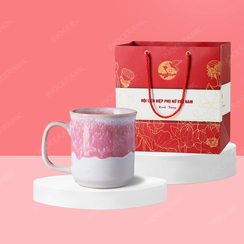 Quà tặng phụ nữ - Ly sứ Hồng Ngọc quai C men hỏa biến CAM KẾT: “Đừng chỉ tặng một món quà – hãy trao một giá trị văn hoá.”