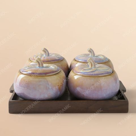 🎁 Bộ 4 hũ mứt dáng quả hồng men hoả biến tuyết hồng – Quà Tết doanh nghiệp cao cấp mang ý nghĩa thịnh vượng và an lành