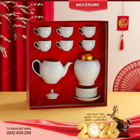 Tổng thể tạo nên một bộ quà Tết gốm sứ mang đậm tinh thần “tối giản mà sang trọng” – xu hướng được nhiều doanh nghiệp hàng đầu Việt Nam lựa chọn trong quà tặng Tết 2026.