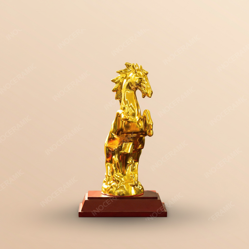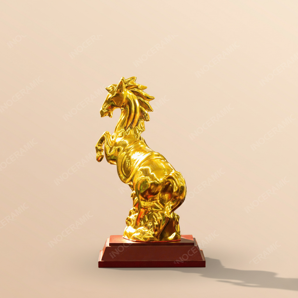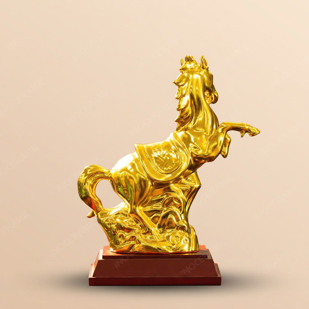 Tượng Chiến Mã Khải Hoàn được chế tác thủ công tại làng nghề gốm sứ Bát Tràng, nơi nổi tiếng với quy trình tạo hình và nung men hàng trăm năm tuổi. Chất liệu gốm được chọn lọc kỹ, nung ở nhiệt độ cao giúp tượng: