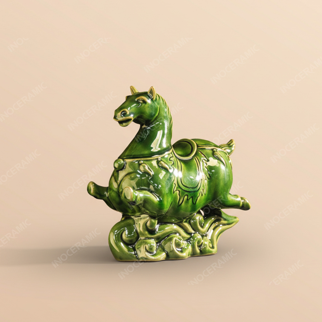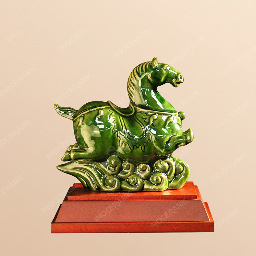 Chính màu men này giúp vật phẩm phù hợp làm tượng phong thuỷ, tượng để bàn văn phòng, hoặc tượng trang trí tại thư phòng, showroom, phòng họp – vừa tăng tính thẩm mỹ vừa mang lại cát khí cho không gian.