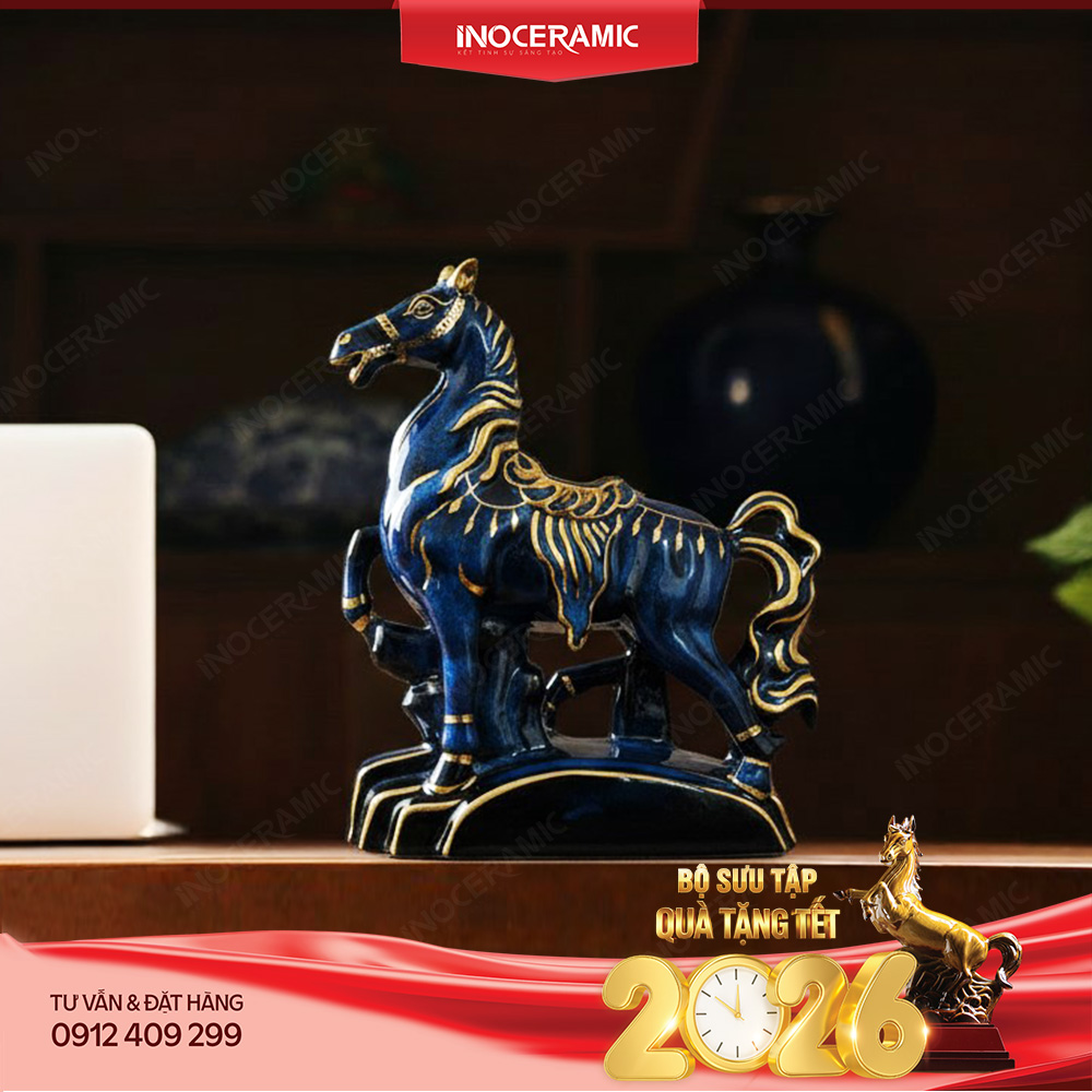 🎁 Tượng ngựa Thanh Mã Vân Mao – Linh vật ngựa gốm sứ Bát Tràng phong thuỷ Tết 2026